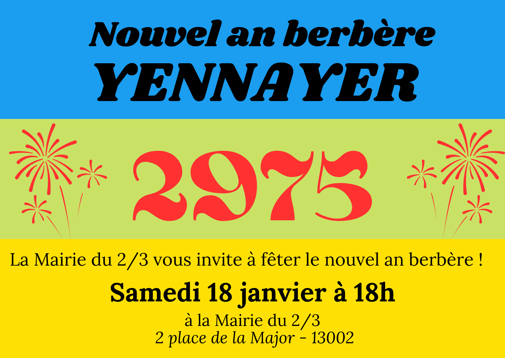 Votre Mairie de secteur vous invite pour fêter ensemble le nouvel an berbère samedi 18 janvier à partir de 18h !