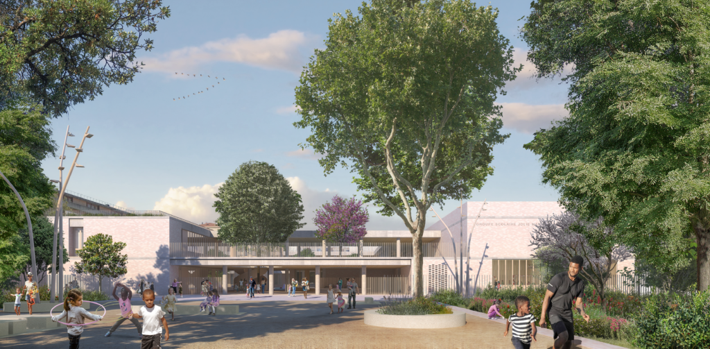 Le groupe scolaire Jolie Manon tout juste sorti de terre au cœur de la Belle de Mai accueille, dès septembre 2025, 17 classes (7 maternelles, 10 élémentaires). Le petit truc en plus ? Un parc urbain de 4 200m² contigu à l’école